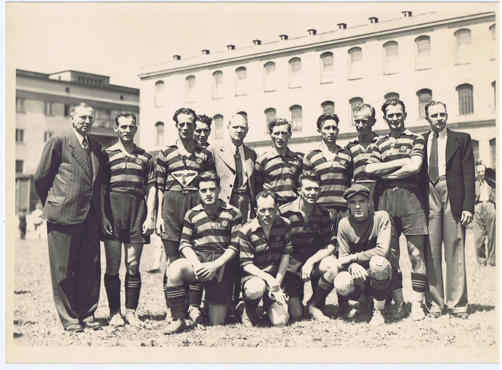 Verein für Geschichte der ArbeiterInnenbewegung, Wiberal: W1/302: Fußball im Nationalsozialismus: Die Mannschaft des WAC, 1939. 1. Reihe sitzend links: Otto "Stopperl" Fodrek